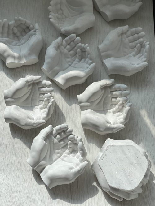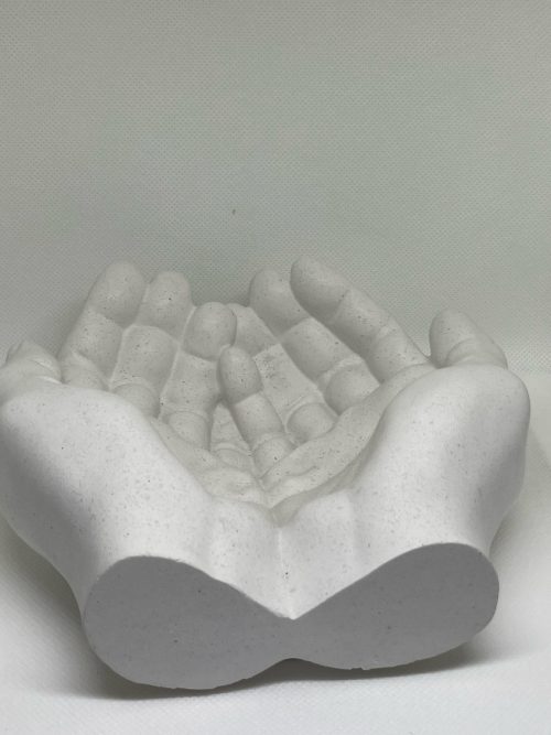 Handcrafted design shape as receiving hands. The design reflects a modern aesthetic of giving and welcoming any space with warmth. A timeless addition to spaces that value beauty, uniqueness, functionality and mindfulness.