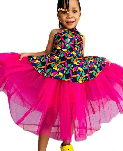kiddies pink skirt and African print top available in ages 3,4,5,6,7,8 and 9 years