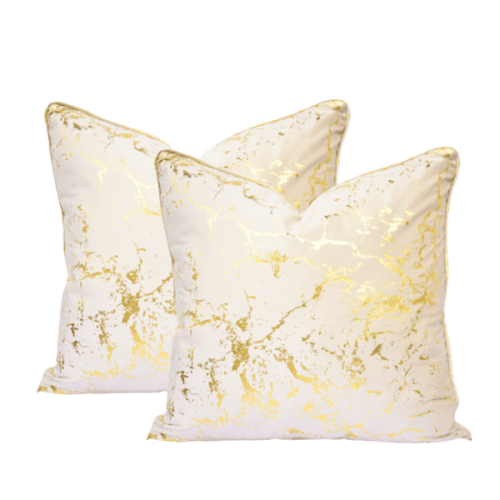Elevate your living space with the opulent allure of our LuxGold Marble Velvet Scatter Cushion. Crafted with sumptuous velvet fabric featuring a stunning gold marble pattern, this cushion adds a touch of sophistication and modern elegance to any sofa, bed, or armchair. Its plush texture and shimmering design make it the perfect accent piece for contemporary, glam, or luxury interiors. Designed for both comfort and style, the LuxGold Marble Cushion promises to transform your home into a haven of luxe comfort.