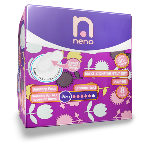 Neno is a Maxi pads, silky, highly absorbent, and unscented pad with wings.