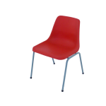Secondary Chair – Stackable steel frame, large orange Polyprop shell: 450mmH